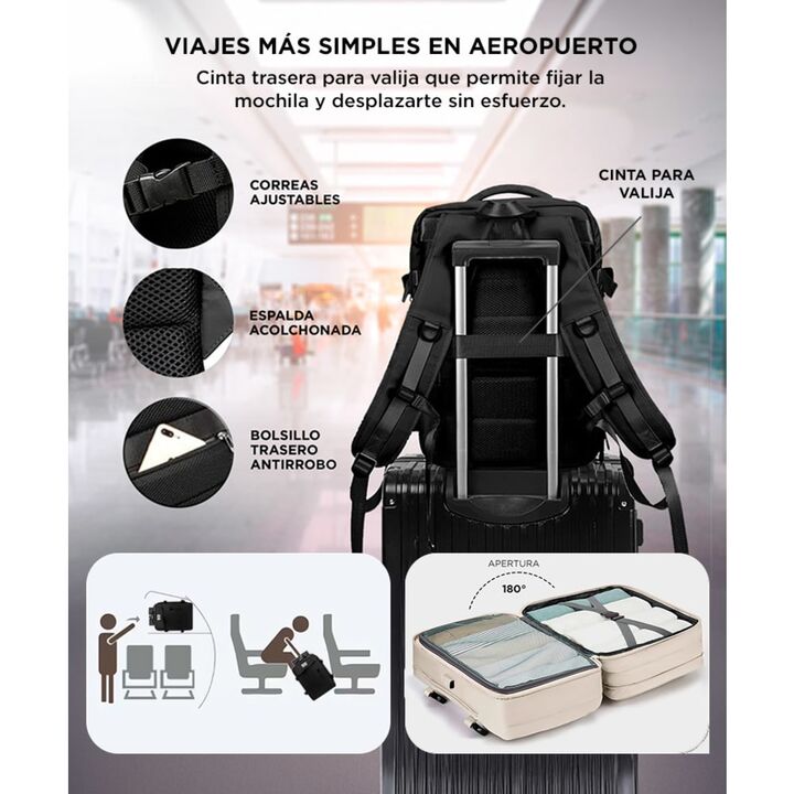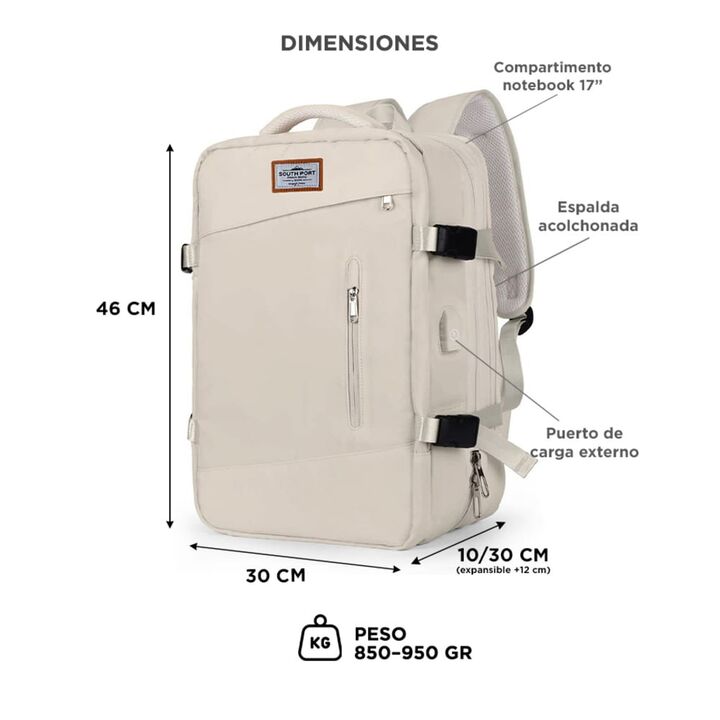 ¡Prepárate para aventuras sin límites con la Mochila de Viaje Portaequipaje South Port! Esta mochila impermeable y expansible está diseñada para acompañarte en tus viajes con estilo y funcionalidad incomparables. La innovación se encuentra en cada detalle. Con un puerto USB incorporado, podrás carga...