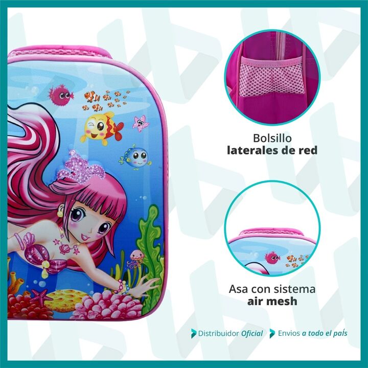 MOCHILA INFANTIL PARA JARDÍN DE INFANTES · Para ir al Jardín de Infantes, de Paseo o de vacaciones · Compartimiento principal con Cierres reforzados · Tiras Ajustables con sistema Air Mesh · Bolsillos laterales · Interior forrado · Cierres reforzados · Diseño Estampado · Zippers metálicos · Medidas ...