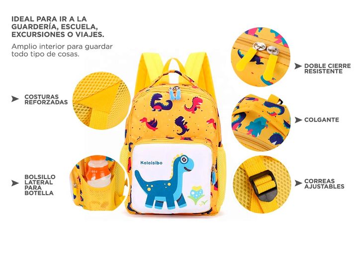 Presentamos la Mochila Escolar Dinosaurios, diseñada especialmente para hacer que cada día en el colegio sea emocionante y divertido. Confeccionada en poliéster de alta calidad, esta mochila es resistente y duradera, ideal para soportar el ajetreo diario de los más pequeños. Su atractivo diseño de d...