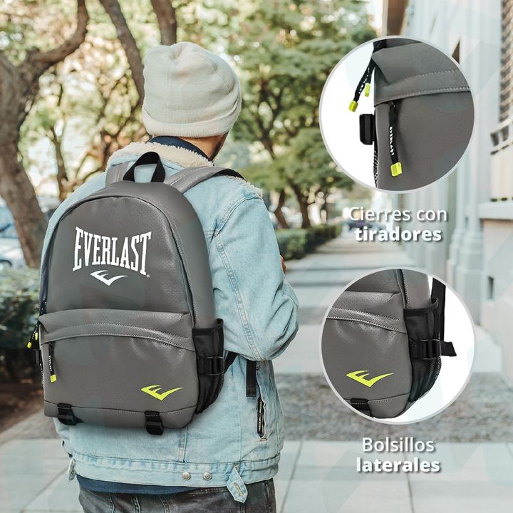 MOCHILA EVERLAST URBANA CON SEPARADOR PARA NOTEBOOK -Amplio compartimiento principal. -Confeccionada con cuero pu microperforado. -Bolsillo porta notebook acolchado con traba de velcro para un dispositivo de hasta 15,6 pulgadas. -Bolsillo frontal con cierre. -Capacidad para cuaderno universitario, f...