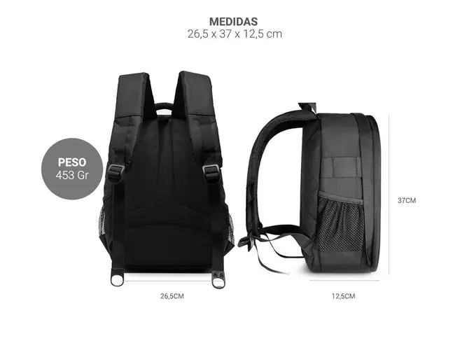 Protege tu equipo fotográfico con la Mochila Fotografía Pro Gadnic 20L, diseñada para fotógrafos exigentes. Con un interior espacioso y configurable, permite organizar cámaras, lentes y accesorios de forma segura. Incluye un candado para mayor protección y una funda impermeable que resguarda tu equi...