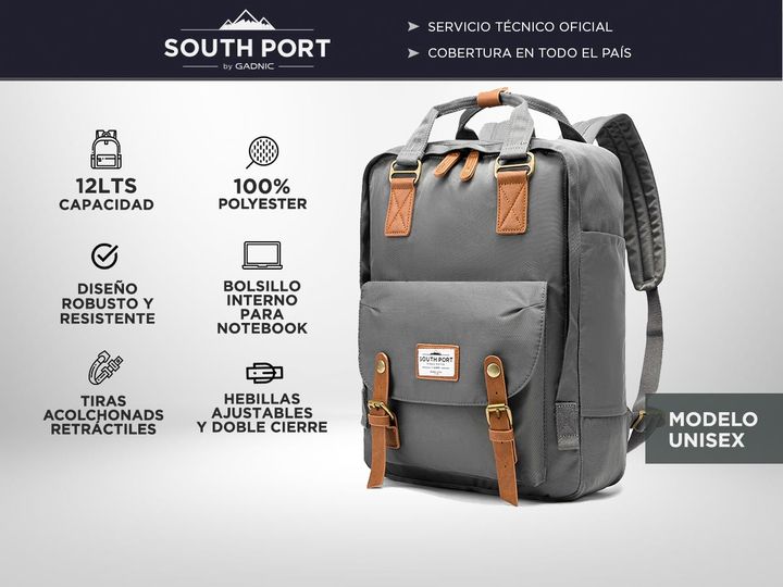Presentamos la Mochila South Port Elegante 3 Unisex, un accesorio compacto y funcional diseñado especialmente para quienes buscan un estilo moderno sin sacrificar la practicidad. Con una capacidad de 12 litros, esta mochila es ideal para transportar laptops de hasta 15,6 pulgadas y otros elementos e...