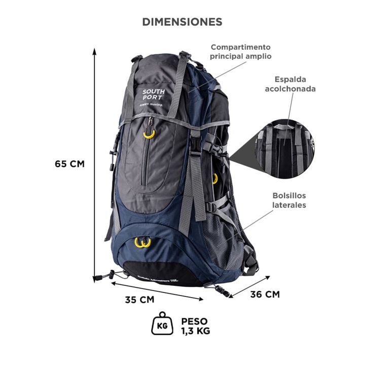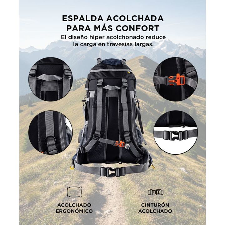 La Mochila Gadnic de 70 litros es la solución ideal para tus aventuras, ofreciendo un amplio espacio para llevar todo lo que necesites en tus viajes. Su diseño espacioso la convierte en la compañera perfecta para caminatas y campamentos, permitiéndote organizar cómodamente tus pertenencias. Confecci...