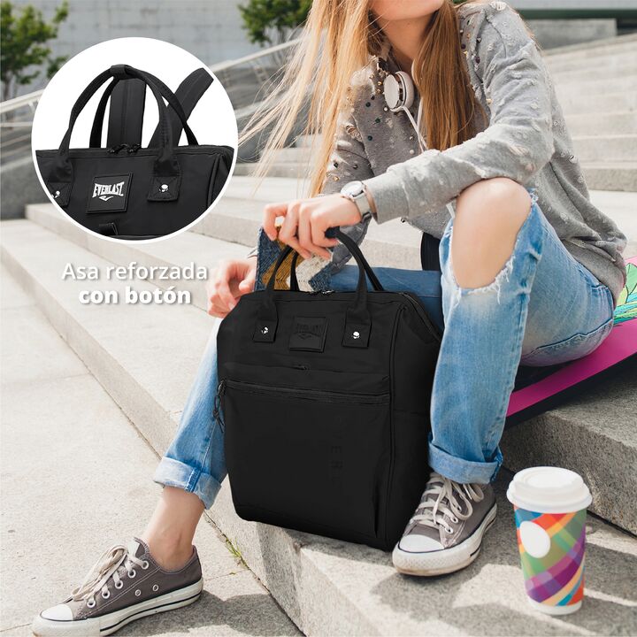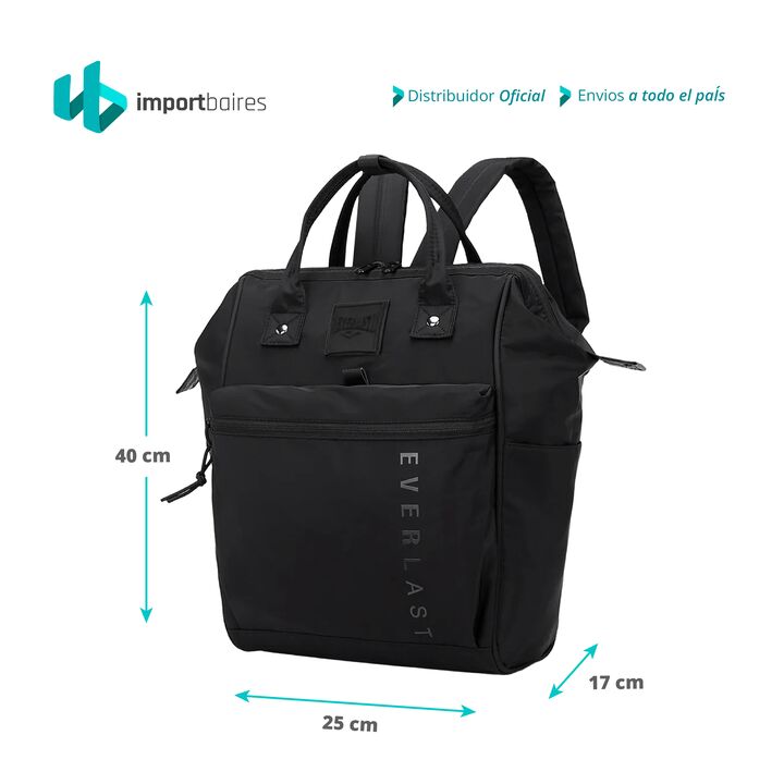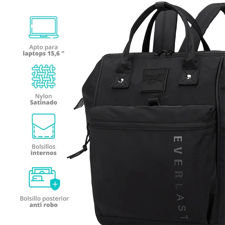 MOCHILA DE MUJER EVERLAST FORMATO BOCA DE PEZ · Confeccionada en Nylon anti desgarre · Abertura Boca de Pez · Amplio compartimiento Principal · Confeccionado en Nylon extra premium, anti desgarre · Practico Bolsillo frontal con cierre · Bolsillo Posterior en espalda de seguridad (Anti-robo) · Espald...