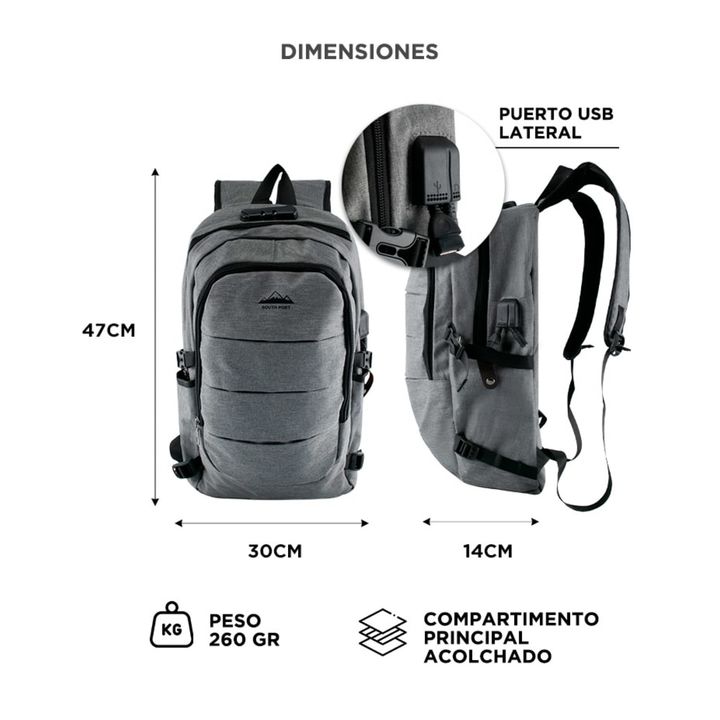 Gadnic presenta la nueva mochila urbana unisex Para los que buscan una mochila moderna y funcional, la South Port de Gadnic se convierte en el aliado ideal. Este modelo combina seguridad y tecnología en un diseño urbano, ideal para usuarios que requieren espacio, organización y conectividad. La moch...