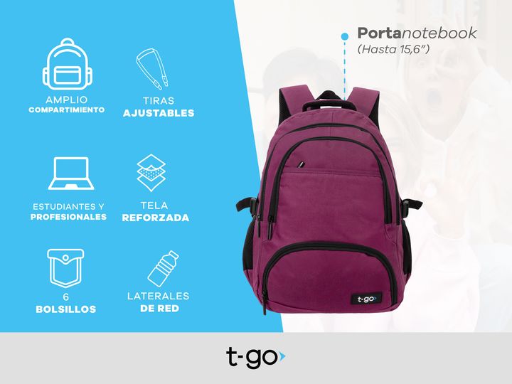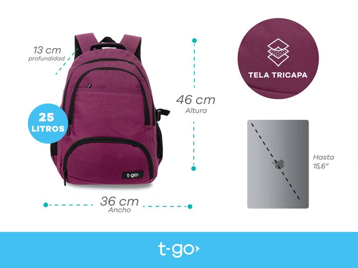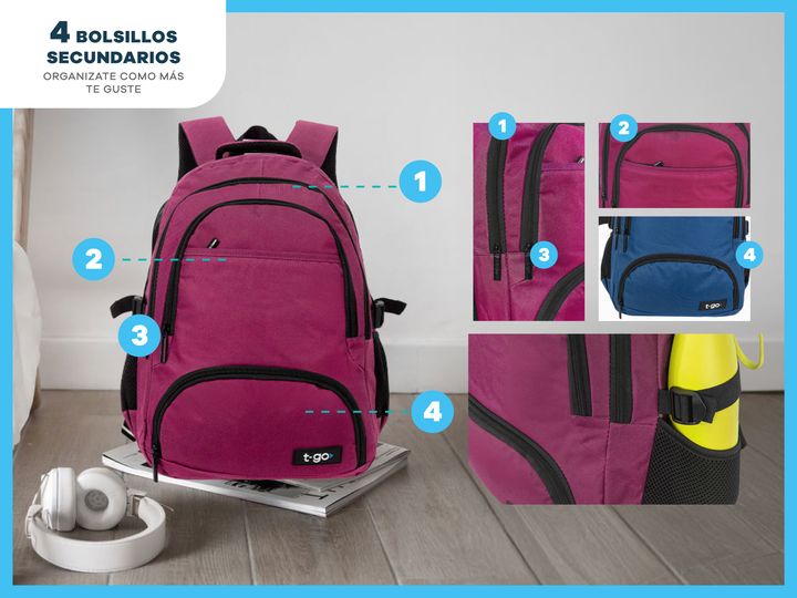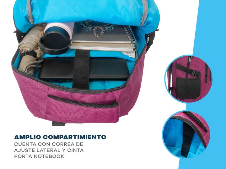 MOCHILAS PORTANOTEBOOK 15,6 PULGADAS CON 4 BOLSILLOS - Amplio compartimiento central - Compartimiento acolchado para Notebook hasta 15,6 pulgadas - Múltiples Bolsillos al frente - Medida: 46 cm alto x 36 cm ancho x 13 cm profundidad - Bolsillos laterales porta botellas - Cinchas ajustables laterales...