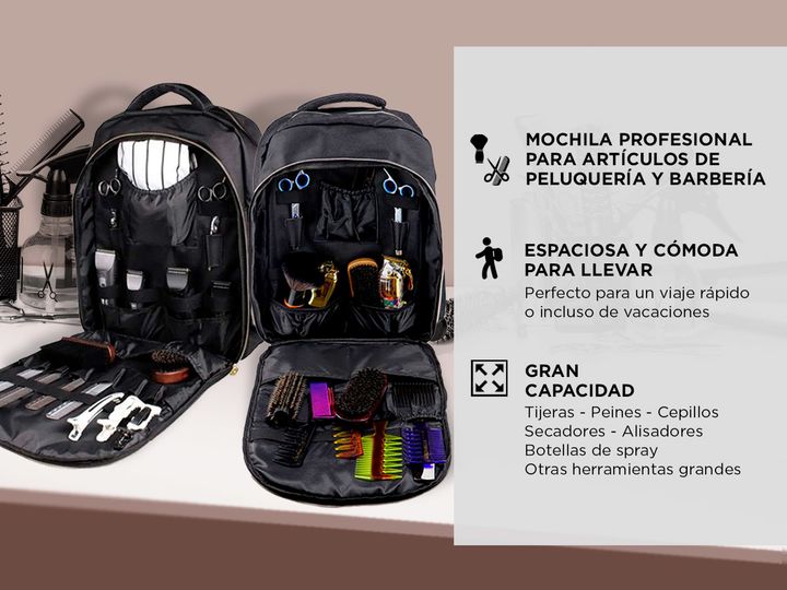 ¡Gadnic Presenta su Mochila De Peluquería! La mochila profesional de peluquería Gadnic puede almacenar tijeras, peines, cortapelos de pelo, secadores de pelo, alisadores de pelo, peines, cepillos, botellas de spray de capa y otras herramientas grandes, es tu mochila ideal para herramientas de peluqu...