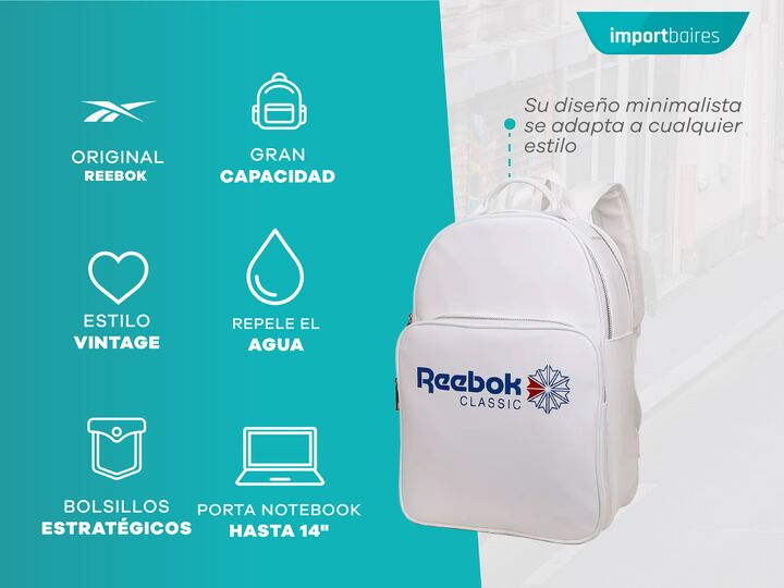 MOCHILA REEBOK ORIGINAL DE ECO CUERO La mochila Reebok es la elección perfecta para quienes buscan un accesorio funcional y elegante. Su diseño minimalista se adapta a cualquier estilo, mientras que su construcción robusta garantiza durabilidad en cada uso. Ideal para el día a día, esta mochila comb...