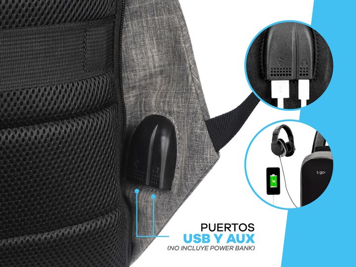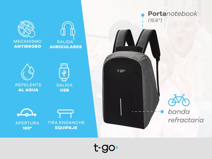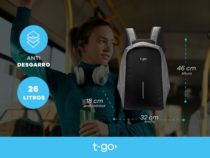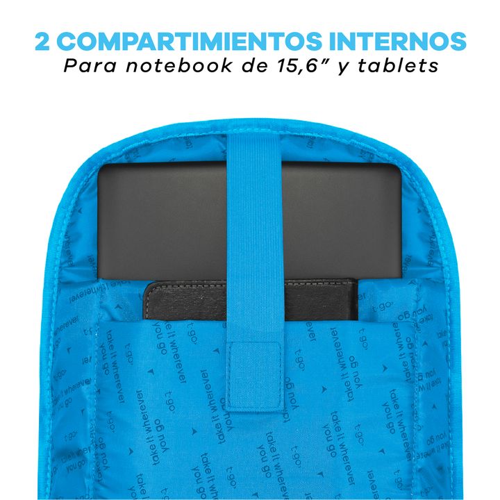 MOCHILA T-GO PORTA NOTEBOOK ACOLCHADA ANTIRROBO IMPERMEABLE - Función con cierres antirrobos escondidos - Espacio porta notebook acolchado 15.6 - Espacio para Tablet acolchado 10.1 - Resistente al agua externa e internamente - Espaldar postural totalmente acolchada - Organizadores internos de red pa...