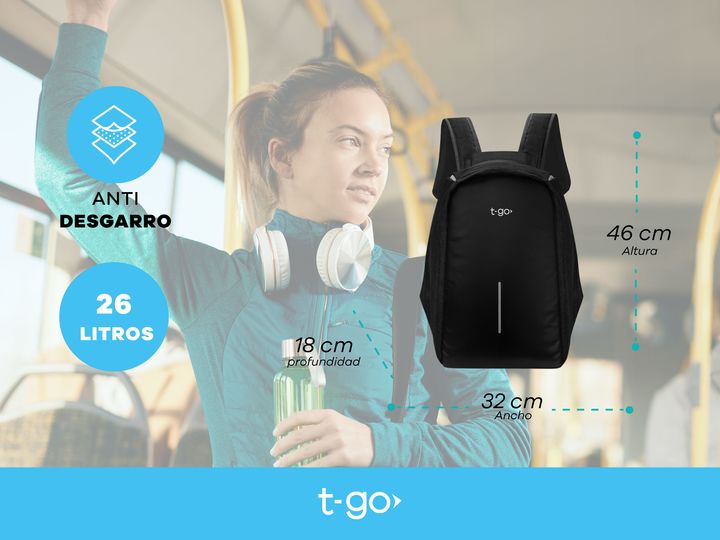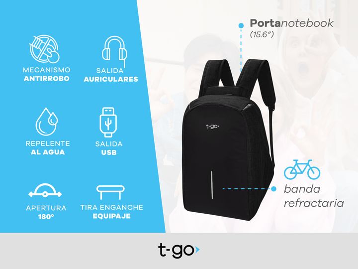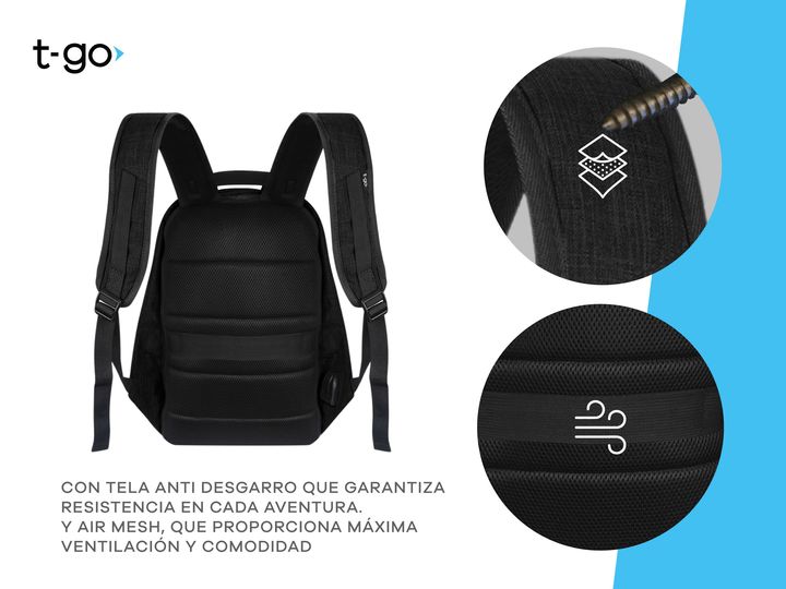 MOCHILA T-GO PORTA NOTEBOOK ACOLCHADA ANTIRROBO IMPERMEABLE - Función con cierres antirrobos escondidos - Espacio porta notebook acolchado 15.6 - Espacio para Tablet acolchado 10.1 - Resistente al agua externa e internamente - Espaldar postural totalmente acolchada - Organizadores internos de red pa...