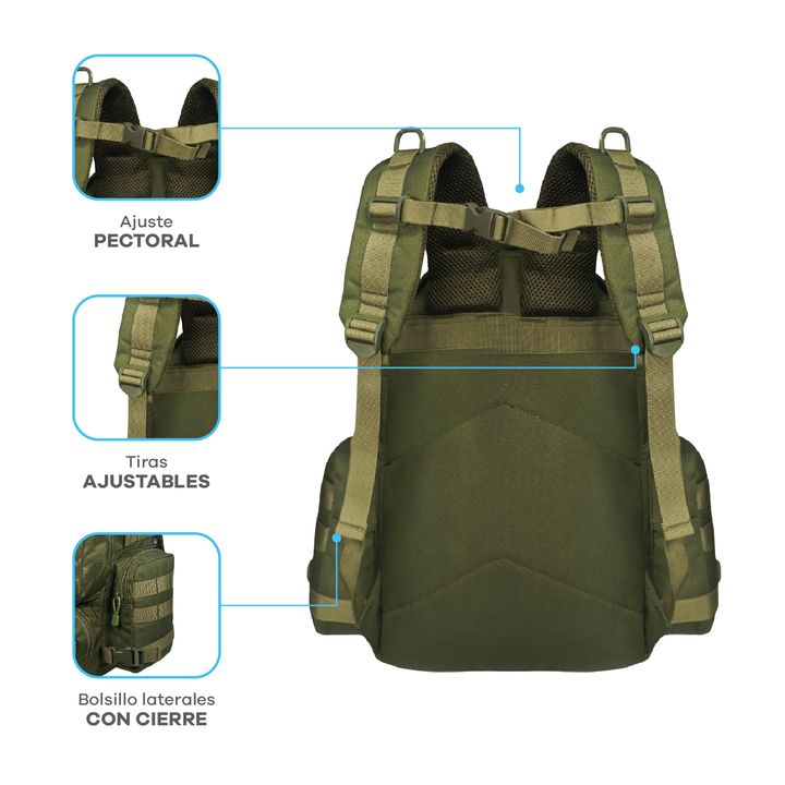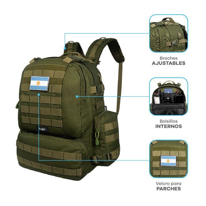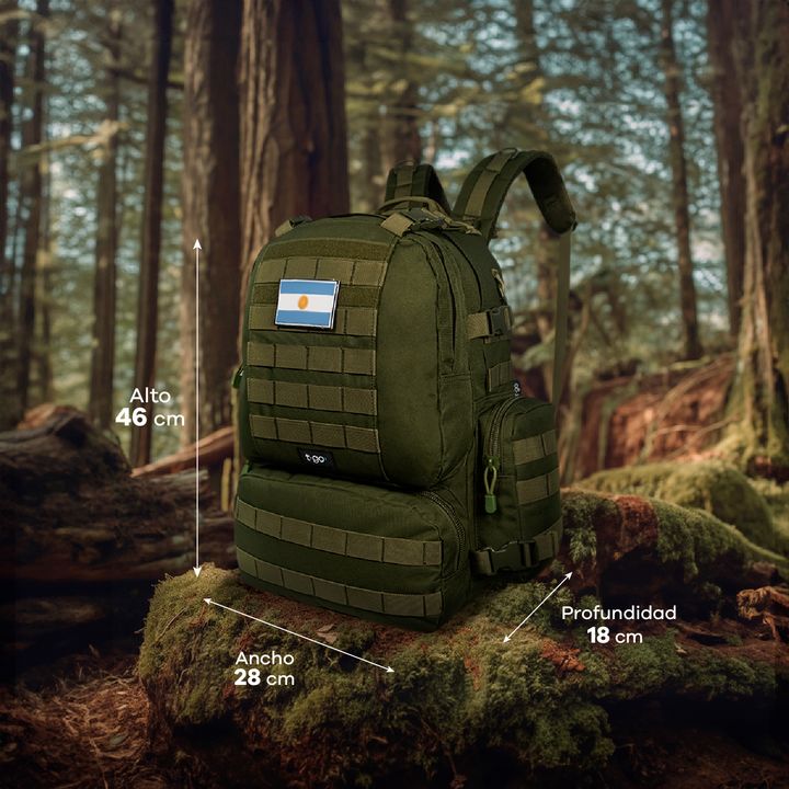 MOCHILA TÁCTICA PORTANOTEBOOK T-GO CON SISTEMA MOLLE -Asa de transporte superior. -Confeccionada con tela tipo cordura importada rígida, garantía de resistencia. -Espaldar acolchado. -Parche removible de regalo con la bandera nacional. -Tiras ajustables acolchadas y con air mesh. -Múltiples comparti...