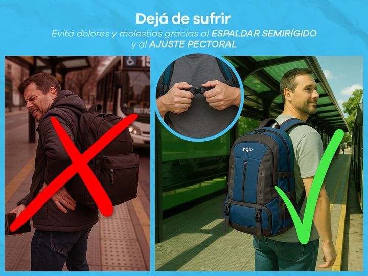 MOCHILA DE VIAJE 47 LITROS T-GO CAMPING TREKKING Mochila de viaje, camping con múltiples bolsillos . Fabricada en Nylon ripstop resistente al desgaste. Sistema Air mesh en la espalda y correas para una ventilación óptima. Ideal para trekking y/ viajes cortos ya que es apta como equipaje de cabina. -...