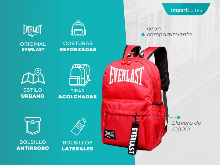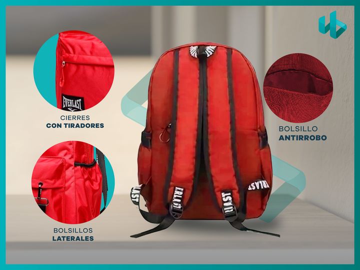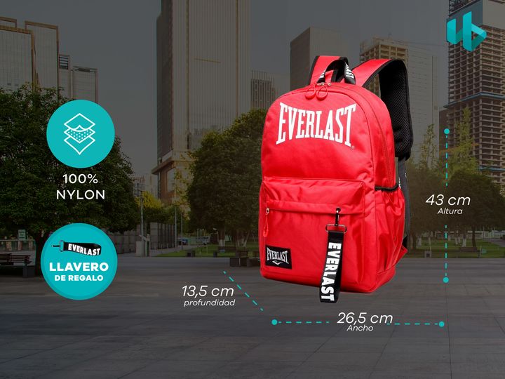 MOCHILA URBANA EVERLAST ORIGINAL DEPORTIVA -Marca EVERLAST -Medida : 43cm alto x 26.5cm ancho x 13.5cm profundidad -Interior Forrado con logos de la marca -Bolsillo Frontal -Bolsillos laterales porta botella con elástico -Llavero de la marca -Tamaño perfecto para uso en la ciudad, escolar, viajes, d...