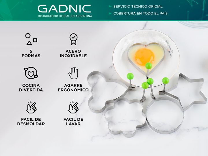 Versatilidad sin Límites: Con cinco formas diferentes, incluyendo círculo, corazón, estrella, cuadrado y flor, este molde te permite crear huevos fritos con formas divertidas y originales, convirtiendo cada desayuno en una experiencia única. Material de Alta Calidad: Fabricado con acero inoxidable d...