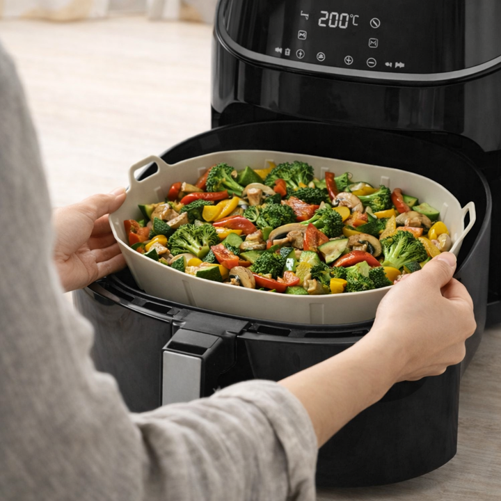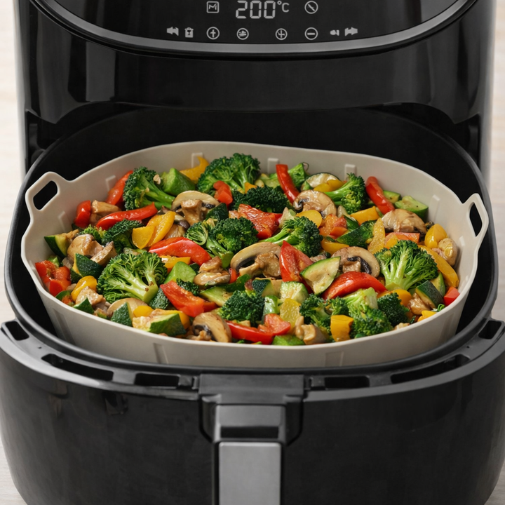 Simplifica tus comidas y cuida tu Air Fryer con este molde de silicona premium, diseñado para lograr una cocción pareja, practica y sin complicaciones.