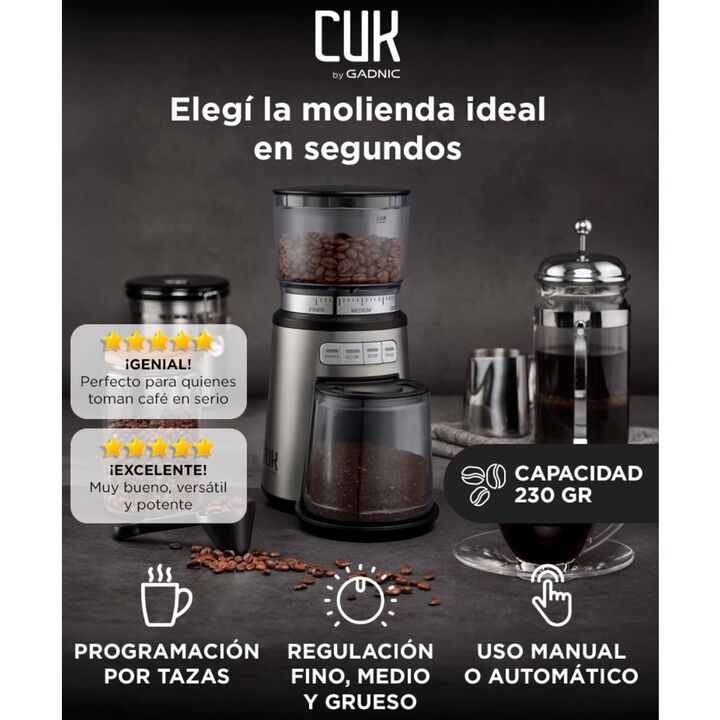 Molienda regulable para distintos tipos de café: El molinillo de café eléctrico Zendo Max permite ajustar el grosor de molienda en fino, medio o grueso, adaptándose a espresso, filtro o cafetera tradicional según tu preferencia diaria. Programación automática por cantidad de tazas: Incorpora botones...