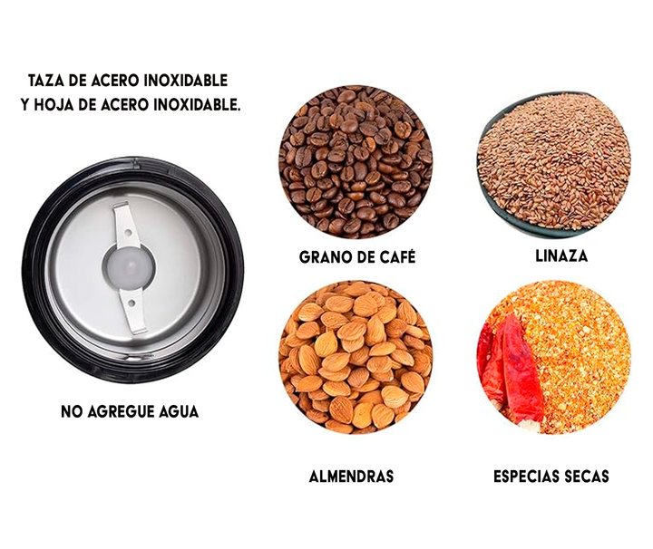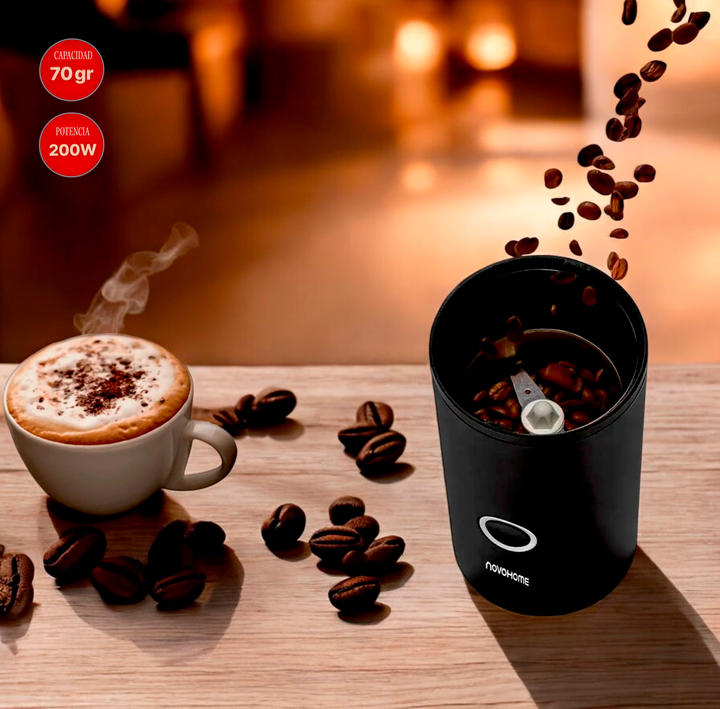 MOLINILLO DE CAFE NOVOHOME - COFFEE GRINDER SKU: NH-MO140 Café molido fresco con solo tocar un botón. Este molino de café permite que sea fácil lograr una molienda uniforme para hacer una taza de café deliciosa. Cuchillas y tazón de acero inoxidable: las cuchillas afiladas y el tazón de molienda est...