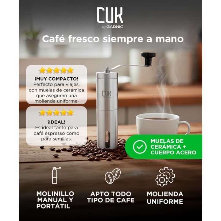 ¡Nuevo Molinillo Manual GADNIC! El diseño portátil le permite llevarlos a casa, a la oficina o a cualquier otro lugar. El grosor del núcleo de molienda se puede ajustar y el autocontrol es en sentido horario y antihorario. El café en polvo que se ha molido demasiado de una vez se puede almacenar tem...