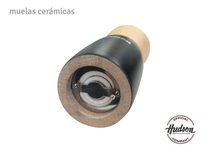 CARACTERÍSTICAS: - Marca: Hudson - Modelo: MOLI06 - Material: Madera y madera laqueada en negro - Material muelas: Cerámica - Dimensiones (AnxAlxPr): 5,4 cm x 20 x 5,4 cm - Peso: 0,3 Kg CONTENIDO DE LA CAJA: - 1 Molinillo