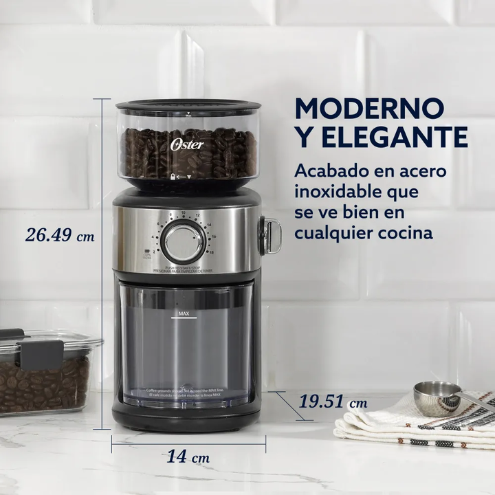 Molienda perfecta para un café más fresco y con mejor sabor Disfrutá de todo el aroma y sabor del café recién molido con el molinillo automático Oster. Diseñado para ofrecer precisión y practicidad, muele los granos al instante con solo presionar un botón, conservando al máximo la frescura de cada p...