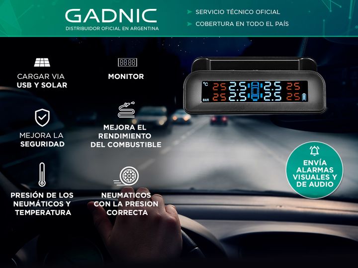 ¡Nuevo Monitor De Presión Gadnic Inalambrico ! Mantener la presión adecuada de los neumáticos en todo momento garantiza la seguridad del vehículo y ayuda a lograr la economía de combustible deseada. El monitor es sensible al movimiento y controla la presión y la temperatura de los neumáticos en inte...