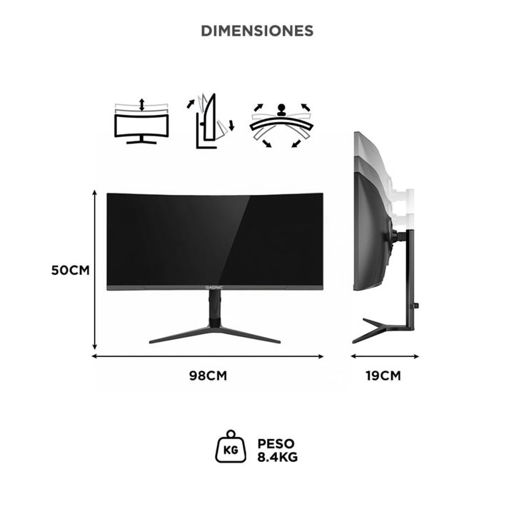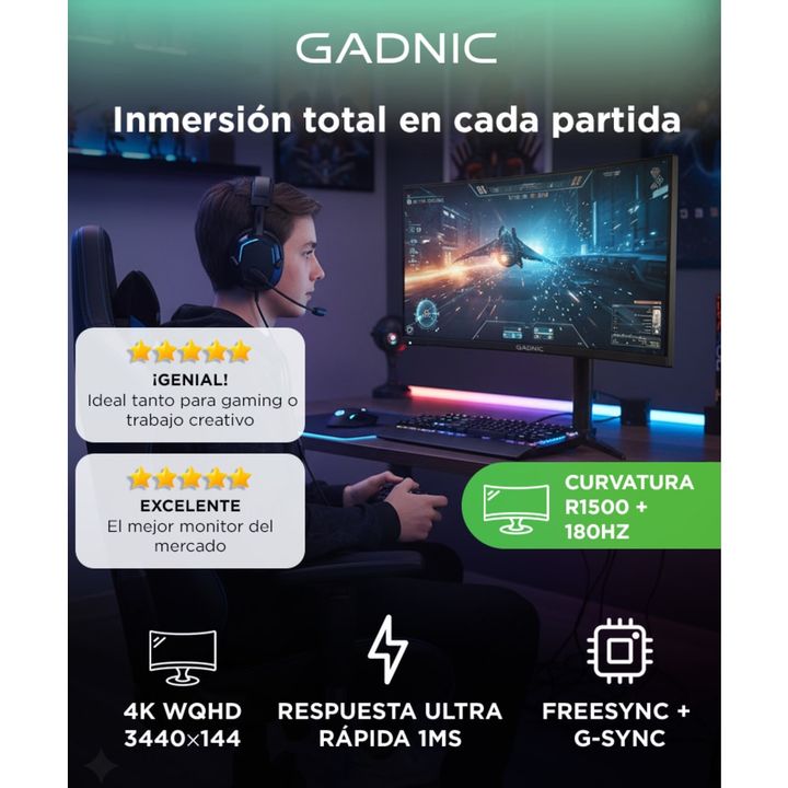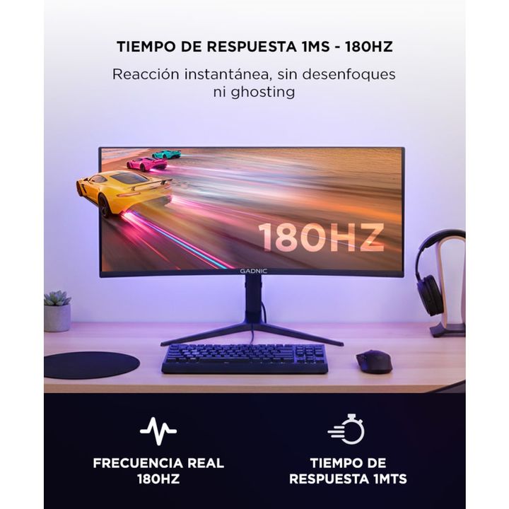 Curvatura R1500 ultrapanorámica: Experimentá una inmersión total en tus juegos y contenido multimedia. Fluidez profesional 180Hz: Movimientos naturales sin cortes, ideal para eSports y shooters. Tiempo de respuesta 1ms MPRT: Reaccioná al instante con precisión total en cada partida. Panel VA QHD 344...