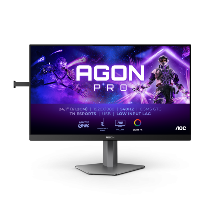 Conquista los juegos con AGON AG246FK, un monitor Full HD 24,1 para brillar en eSports. Con una frec. act. de 540Hz, ofrece imágenes ultrafluidas en las competiciones. El diseño Pro eSports incluye un panel TN eSports para tiempos de respuesta ultrarrápidos. Cubre el 99% del espacio de color sRGB, m...