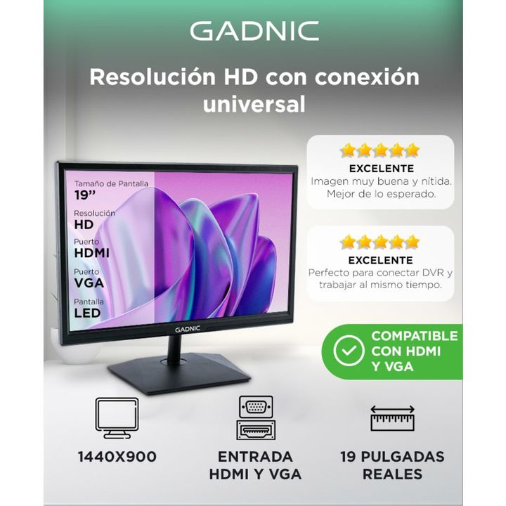 Descubrí el Monitor LED Gadnic de 19 pulgadas, una solución versátil y de alto rendimiento diseñada para satisfacer las necesidades de una amplia variedad de entornos, desde oficinas y hogares hasta centros educativos y comerciales. Con una resolución de 1440x900, una tasa de refresco de 75Hz y una ...