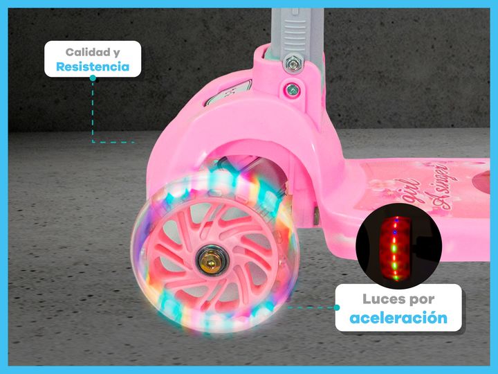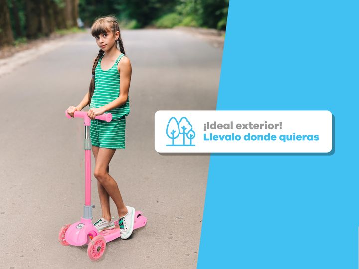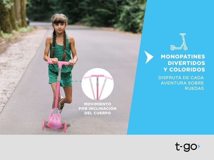 MONOPATIN T-GO PLEGABLE 3 RUEDAS Y FRENO + ACCESORIOS DE SEGURIDAD + CASCO - Edad recomendada: Hasta 5 años - Peso soportado: Hasta 30 kg - Casco ,muñequeras, coderas y rodilleras - Luces led en las ruedas que se activan por aceleración - 5 alturas regulables (60 cm, 65 cm, 70 cm, 75 cm y 80 cm) - M...