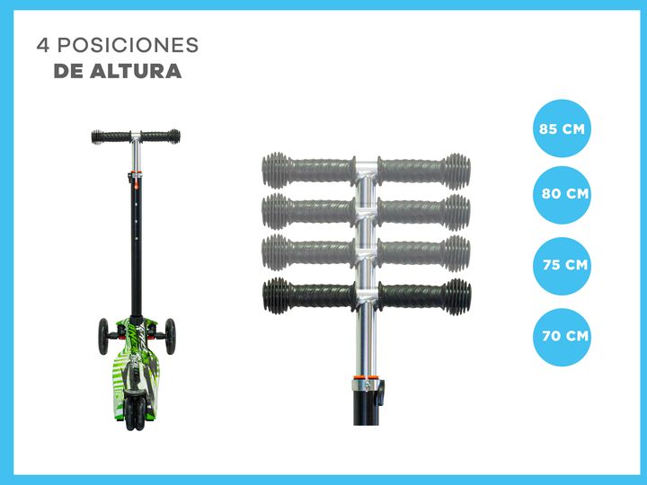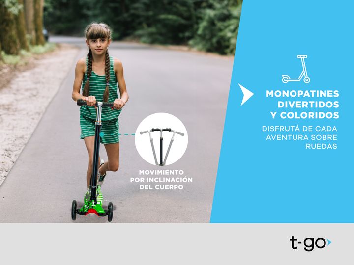 MONOPATÍN T-GO 4 RUEDAS URBAN KIDS CON LUCES - Edad recomendada: Hasta 14 años - Peso soportado: Hasta 60 KG - Luces led en las ruedas que se activan por aceleración - 4 alturas regulables (70 cm, 75 cm, 80 cm, 85 cm) - Material resistente y duradero para soportar el uso diario - Ruedas resistentes ...
