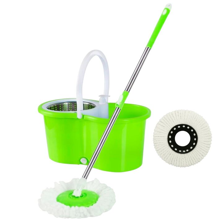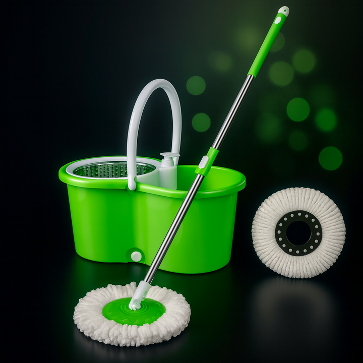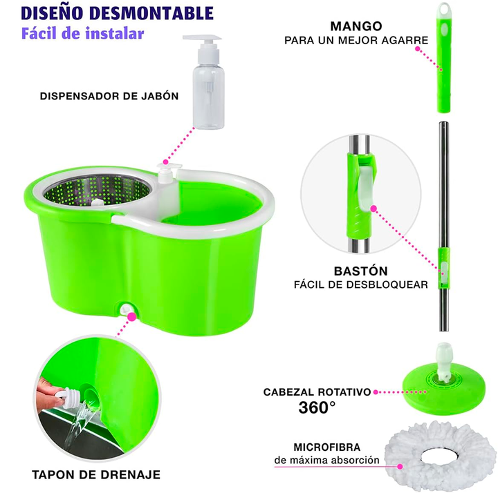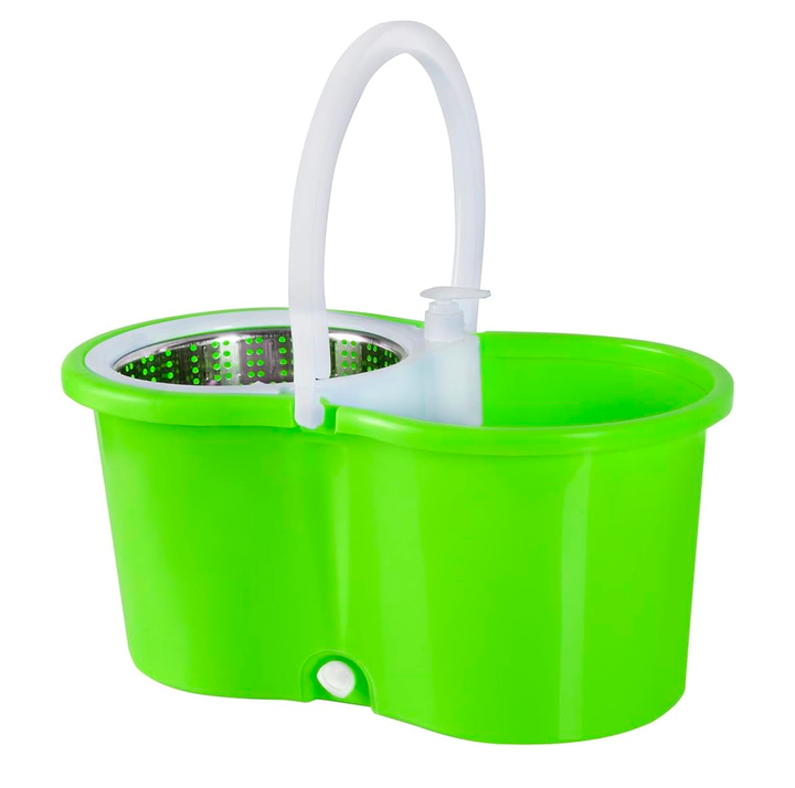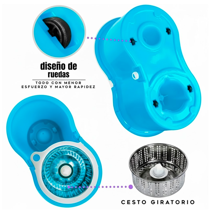 HOGAR ACTUAL BALDE MOPA CENTRIFUGO - Balde centrifugo - Capacidad utilizable 5lts - Tambor de acero - Incluye dos mopas de microfibra - Incluye Palo completo de 137cm de largo - Con rueditas en la base para facilitar su traslado - Con desagote y dispenser
