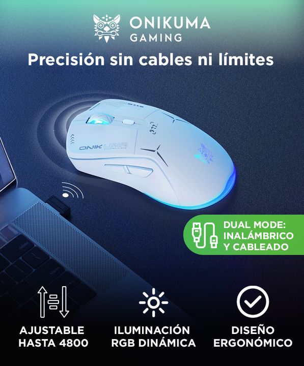 Conexión dual para mayor libertad: Alterná entre modo inalámbrico 2.4GHz y conexión por cable según tus necesidades de juego. Iluminación RGB personalizable: Elegí entre múltiples efectos de luz para complementar tu setup gamer. DPI ajustable hasta 4800: Adaptá la sensibilidad del mouse para distint...