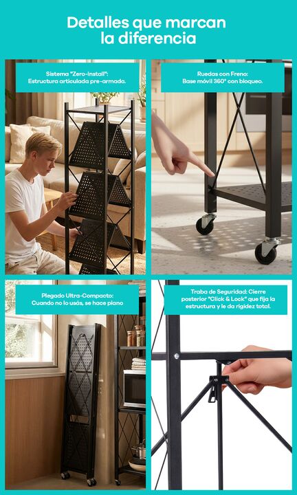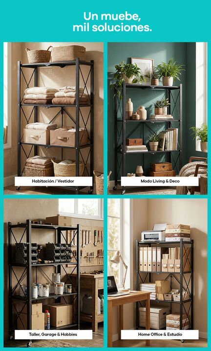 Estantería Organizador para Taller Herramientas Metal 100% reforzado Plegable con Ruedas Nuestra Estantería Plegable es uno de los muebles más versátiles de la línea. Olvidate de las herramientas: aprovechá los espacios de tu casa para ganar lugar de guardado al instante, con un sistema que te permi...