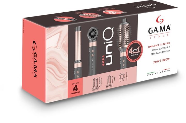 MULTISTYLER UNIQ AURA GAMA - 4 funciones en 1: seca, modela, alisa, riza y da volumen. - Tecnología Efecto Coanda: atrae el cabello automáticamente para lograr peinados definidos y naturales. - Motor Digital Brushless de 100.000 rpm para un rendimiento potente y duradero. - Tecnología Tourmalina: pr...
