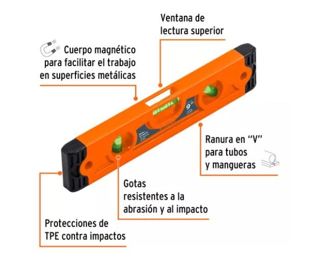 NIVEL TORPEDO MAGNÉTICO DE 9 CON CUERPO DE ABS TRUPER 11223 El Nivel Magnético 9 Plástico Abs Truper 11223 cuenta con una base magnética que se adhiere a cualquier superficie metálica, liberando tus manos para que puedas trabajar de manera más eficiente. Este nivel magnético de 9 pulgadas está hecho...
