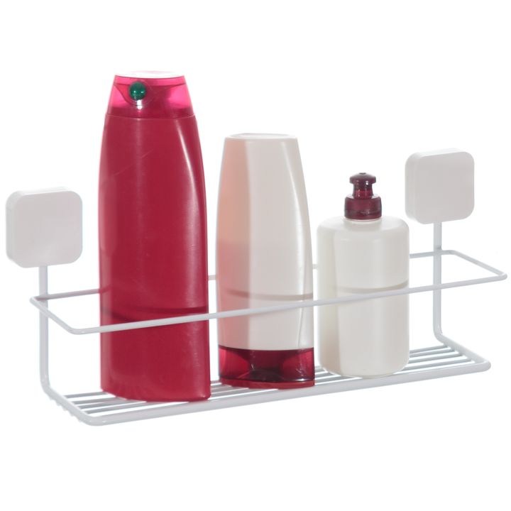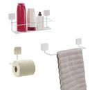Kit para baño compuesto de 3 piezas con la opcion de PEGAR EN PARED con Adhesivo 3 M incluido en kit o sino , tarugos para pared ( ambas opciones son posible y las incluyen) : 1- Estante para Shampoo , Crema de Enjuague y Jabon Longitud: 31 cm Altura del soporte para champú: 6 cm. Altura total: 17 c...
