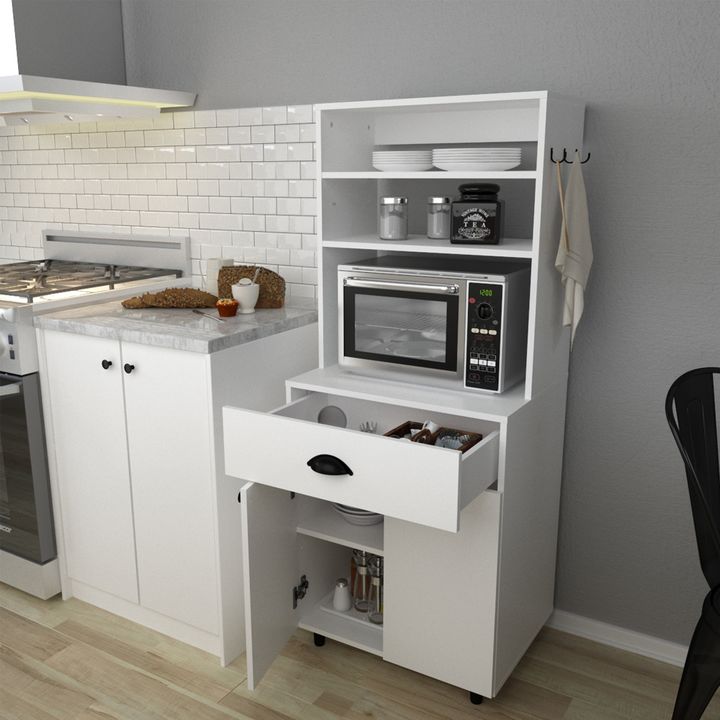 Organizador Centro Estant Cocina Vajillero Microondas Kp50 Modelo: KP50BL Características: MATERIALIDAD Nuestros productos están desarrollados a partir de placas de aglomerado melaminizado proveniente de árboles de reforestación. La melamina brinda una gran protección contra el deterioro, evita rall...