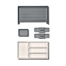 tamaño. Los organizadores de utensilios ahorran espacio al mantener los utensilios ordenados apilados, y el
