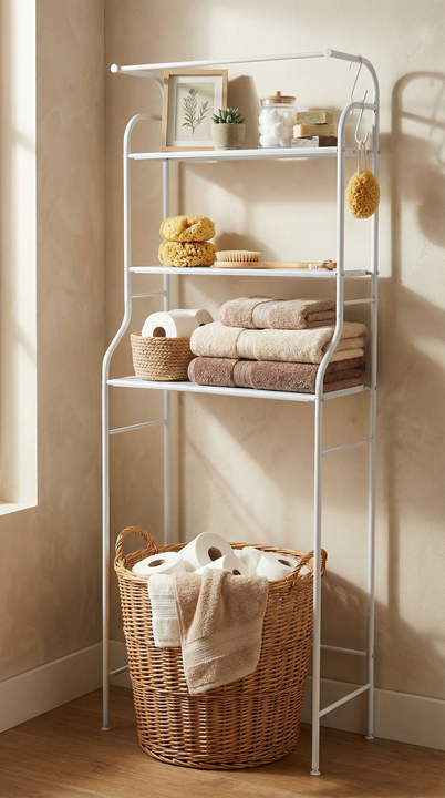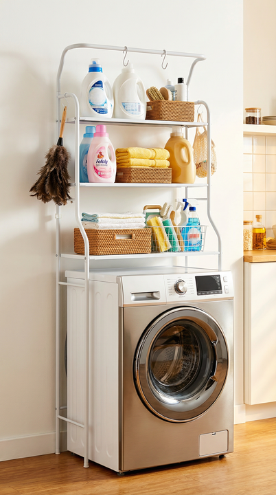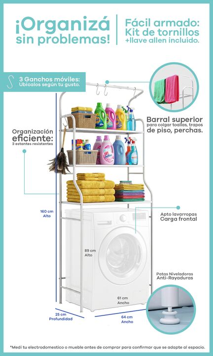 Organizador de Lavadero Premium Sobre Lavarropas - 3 Niveles con Ganchos Maximiza el espacio de tu lavadero sin perforar paredes ¿Vivís en un departamento o tenés un lavadero pequeño? Este rack organizador es la solución definitiva para mantener tus productos de limpieza, suavizantes y toallas siemp...