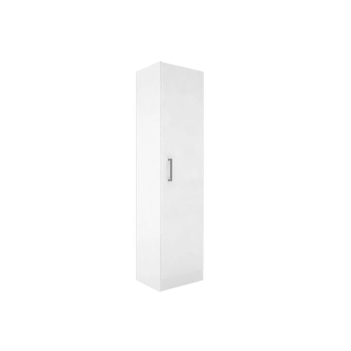 Organizador Multifunción de melamina Línea Eco. Una puerta con bisagras metálicas. Cuatro estantes fijos. Tirador plástico. Color Blanco. Medidas: Ancho: 0.45 mts. Alto: 1.81 mts. Profundidad: 0.38 mts. Productos Seleccionado para venta y entrega “EN CAJA”.