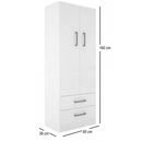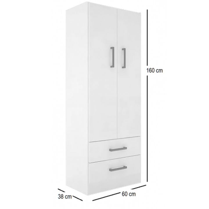 Organizador Multifunción de melamina Línea Eco. Dos puertas con bisagras metálicas. Tres estantes fijos. Dos cajones inferiores con correderas plásticas. Tiradores plásticos. Color Blanco. Medidas: Ancho: 0.60 mts. Alto: 1.60 mts. Profundidad: 0.38 mts. Productos Seleccionado para venta y entrega “E...
