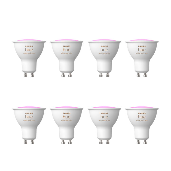 *Pack x8 dicroicas* Foco LED Inteligente Philips Hue White & Color Ambiance GU10 Disfrutá de lo mejor de la iluminación inteligente con el foco LED Philips Hue White & Color Ambiance GU10. Diseñado para spots y luminarias empotradas, ofrece luz blanca regulable y más de 16 millones de colores para c...