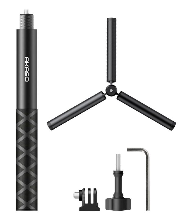 Mayor alcance para capturar mejores ángulos: El palo de selfie Akaso 120 cm permite obtener tomas más amplias y dinámicas al extenderse hasta 1,2 metros. Resulta ideal para viajes, deportes y grabaciones donde se necesita mayor distancia entre la cámara y el usuario. Trípode integrado para grabacion...