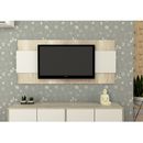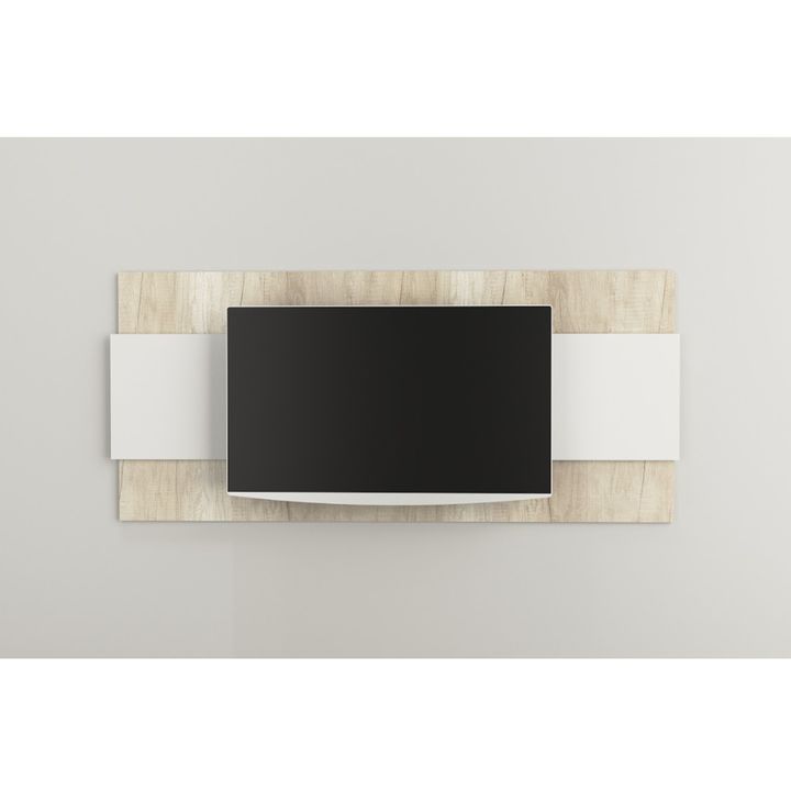 Panel para Tv de 65, de melamina bicolor. Incluye Kit de soporte y tornillos para amurar a la pared. Orificios pasacables. Color Nevado y Everest. Medidas: Ancho: 1.80 mts. Alto: 1.02 mts. Profundidad: 0.05 mts.