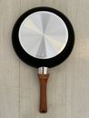 Panquequera de 22 cms recubierta internamente con ceramico antiadherente. Material : Aluminio con antiadherente en su interior. El mango es de baquelita simil madera y contacto siliconado soft touch . El interior tiene antiadherente ceramico ( pintitas blancas) , el exterior de la panquequera es lis...