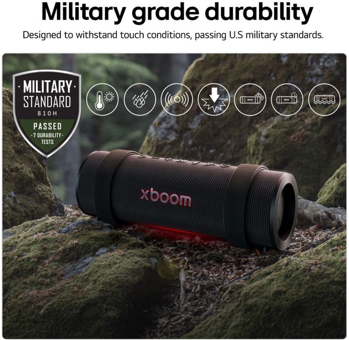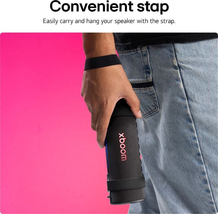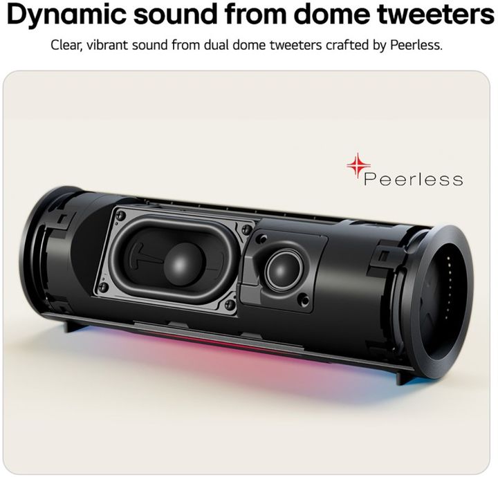 PARLANTE LG XBOOM GRAB 30W BT -[Sonido dinámico de tweeters de cúpula] Claro y vibrante fabricados por Peerless. -[Sonido AI] La AI perfecciona el sonido para cada género -[Calibración AI] Calibra el audio en función del tamaño y la forma del espacio en el que se encuentra. -[Iluminación AI] Detecta...
