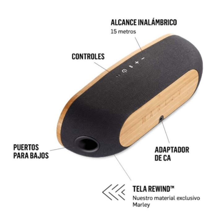 Puerto USB para carga de dispositivos Salida para bajos Hecho a base de bamboo reciclado, algodón orgánico y plástico reciclado. Mensaje de voz Bolsa extraíble con correa para el hombro y asa de transporte Portátil y calidad ultra Premium hacen de Bag of Riddim la envidia de un amante de la música. ...