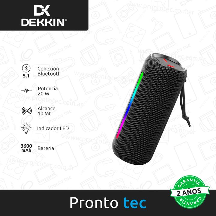 Parlante Inalambrico Bt Boom Dekkin Waterproof Haz que cada momento brille con el Power Boom DEKKIN. Este parlante portátil combina su luz LED al ritmo de la música para transformar cualquier lugar en una pista de baile. Lleva tu música a donde vayas y haz que cada segundo cuente. ¡Con graves de alt...