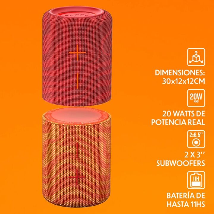 Descripción : El parlante portátil Stromberg Mega-Twin Lava está diseñado para quienes buscan potencia, estilo y versatilidad en un solo equipo. Con un diseño 2 en 1 innovador, podés usarlo como un parlante único o separarlo en dos para disfrutar de un sonido estéreo real que llena cualquier ambient...