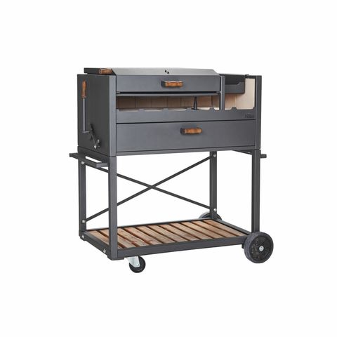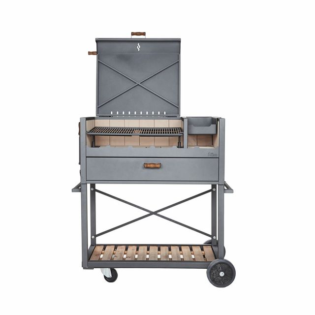 Una parrilla tradicional para desarrollar sus capacidades culinarias. Posee una parrilla de hierros redondos enlozados y a continuacion un brasero para encender con facilidad el carbon o la lena. sobre este se puede colocar una plancha o wok donde cocinar vegetales filetes provoletas etc. Tiene una ...